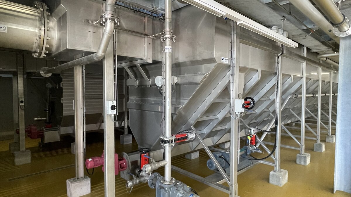 Die beiden Schneckenförderer heben den aus den Nachklärbecken austretenden belebten (mit Mikroorganismen angereicherten) Schlamm, damit er zur Beimpfung des zufliessenden Abwassers wieder in die Belüftungsbecken zurückfliessen kann. Der infolge Wachstum und Vermehrung der Mikroorganismen überschüssige Teil dieses Schlammes wird abgetrennt und als Überschuss-