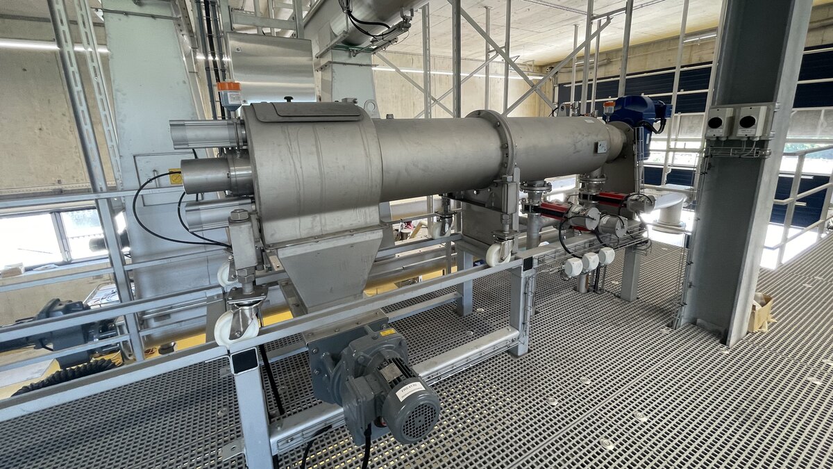 Der Dekanter wurde durch eine Schneckenpresse ersetzt. Die Schneckenpressen haben sich in den letzten Jahren als sehr effiziente Technologie zur Klärschlammentwässerung durchgesetzt.